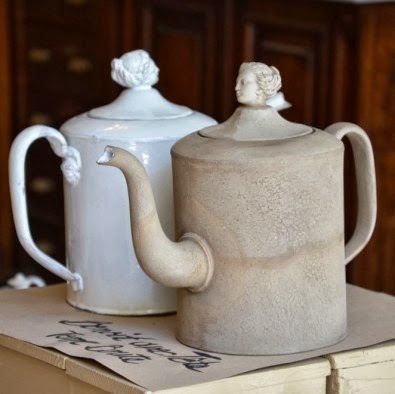 The Benoit Tea Pot with Head, above. Most of the dinnerware pieces are offered in two finishes: All white glazed finish (shown left), or non-glazed exterior with glazed interior (shown right). Either way, they’re both beautiful.