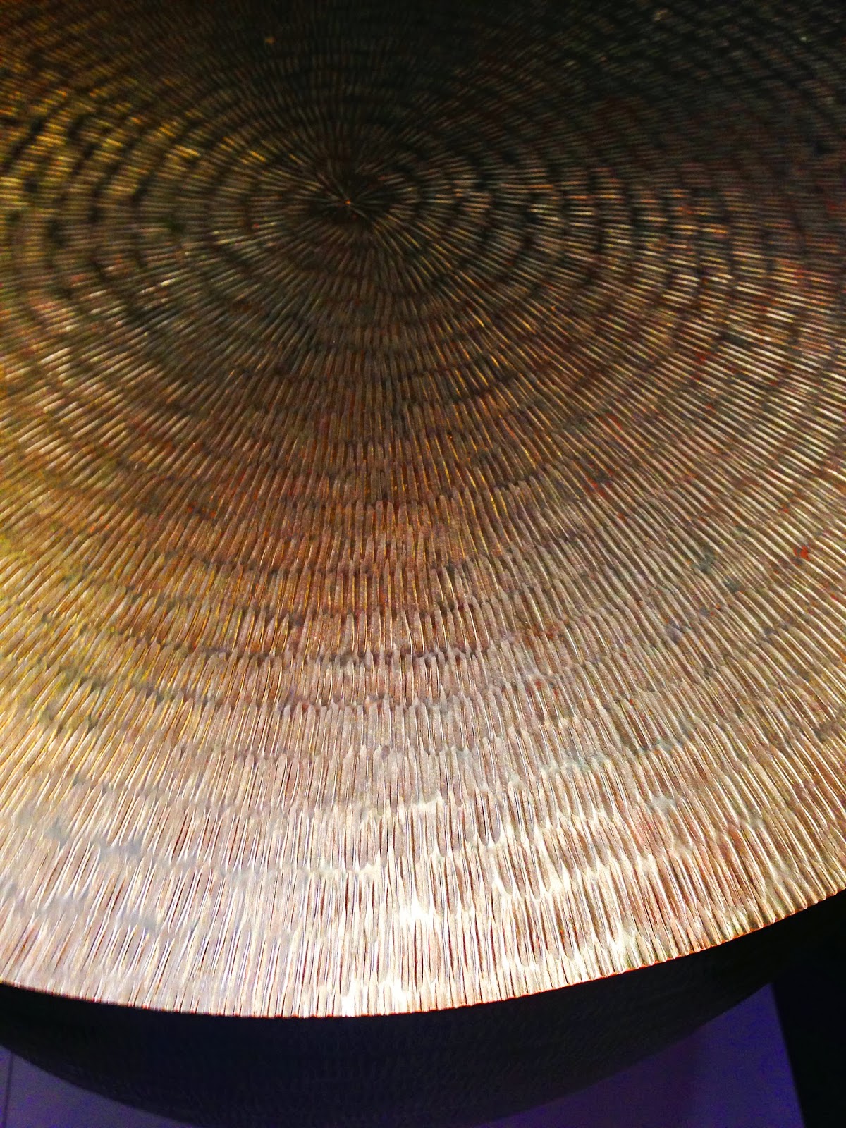 The large round Cocktail Table, above, is 50″ in diameter, and is not only sculptural, but the textured pattern, below, is hand wrought.