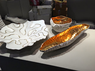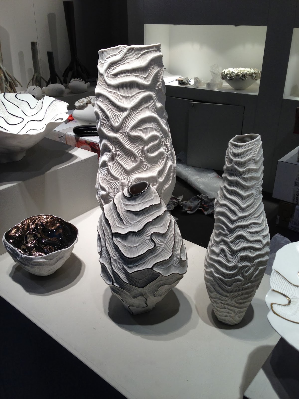 Organic shapes and textures were often married to more refined finishes such as mat white, gold, or silver.