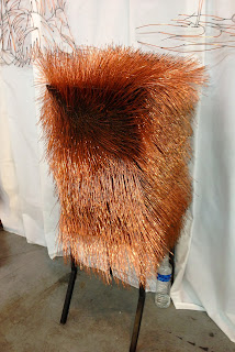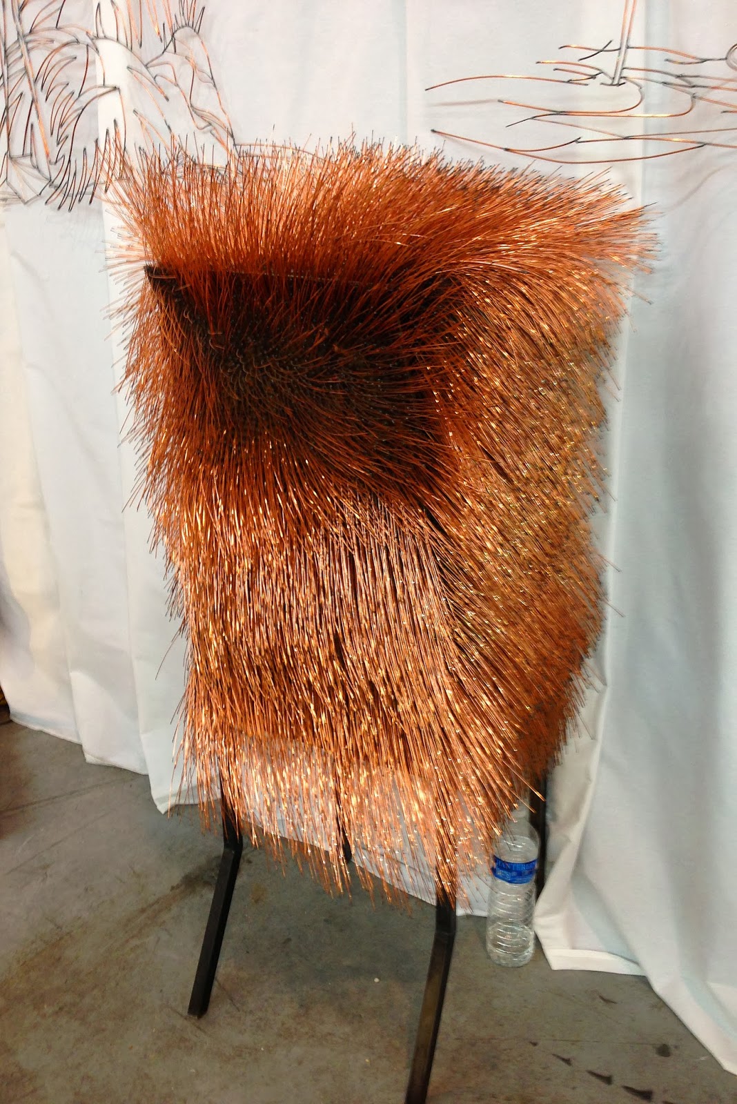 Interesting work in copper: Above, dark copper console; Below, shiny copper ‘cabinet’ on legs.