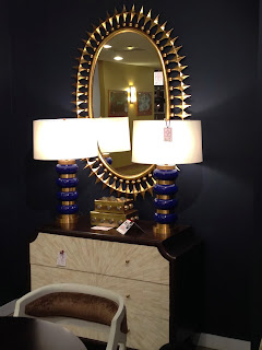 A room setting that seems to revel in Brass: Brass framed Mirror with Brass and Glass Table Lamps