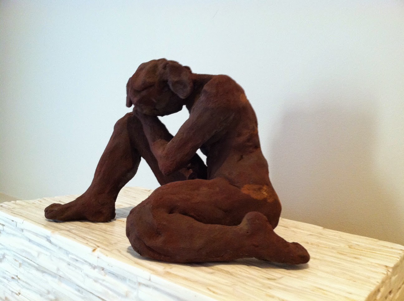Sculptures by Darcy Sears ranges from realistic to whimsical, from classical to abstract, from serious to playful. One series may explore classical figures, some in stoic stance, others may be emerging from vessels, as though they are breaking out of confining spaces.