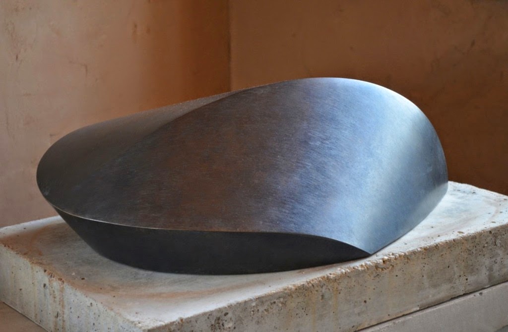 William Siegal Gallery- Tom Waldron- Nickel Plated Steel on concrete base, 20in 13in 7in